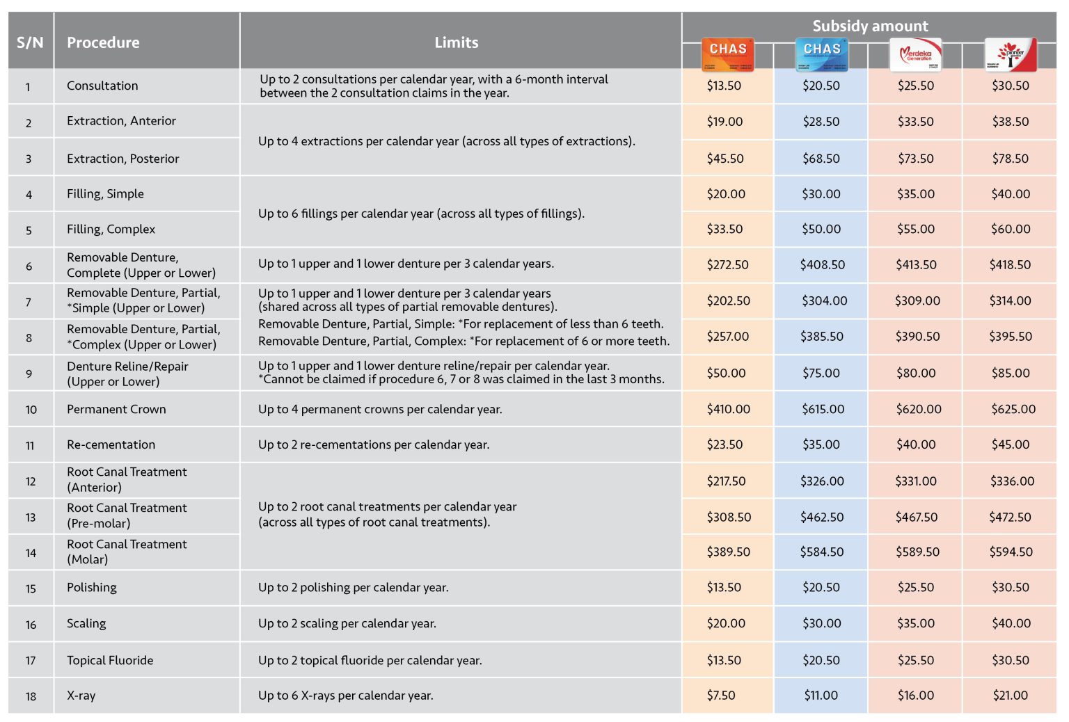 • For dental procedures that involve multiple visits, such as dentures, crowns and root canal treatments, subsidies can only be claimed after the procedure is completed.
